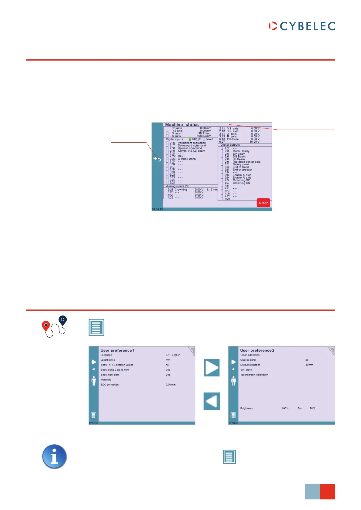 The Status page shows the status of all inputs and outputs and axes positions of the NC.