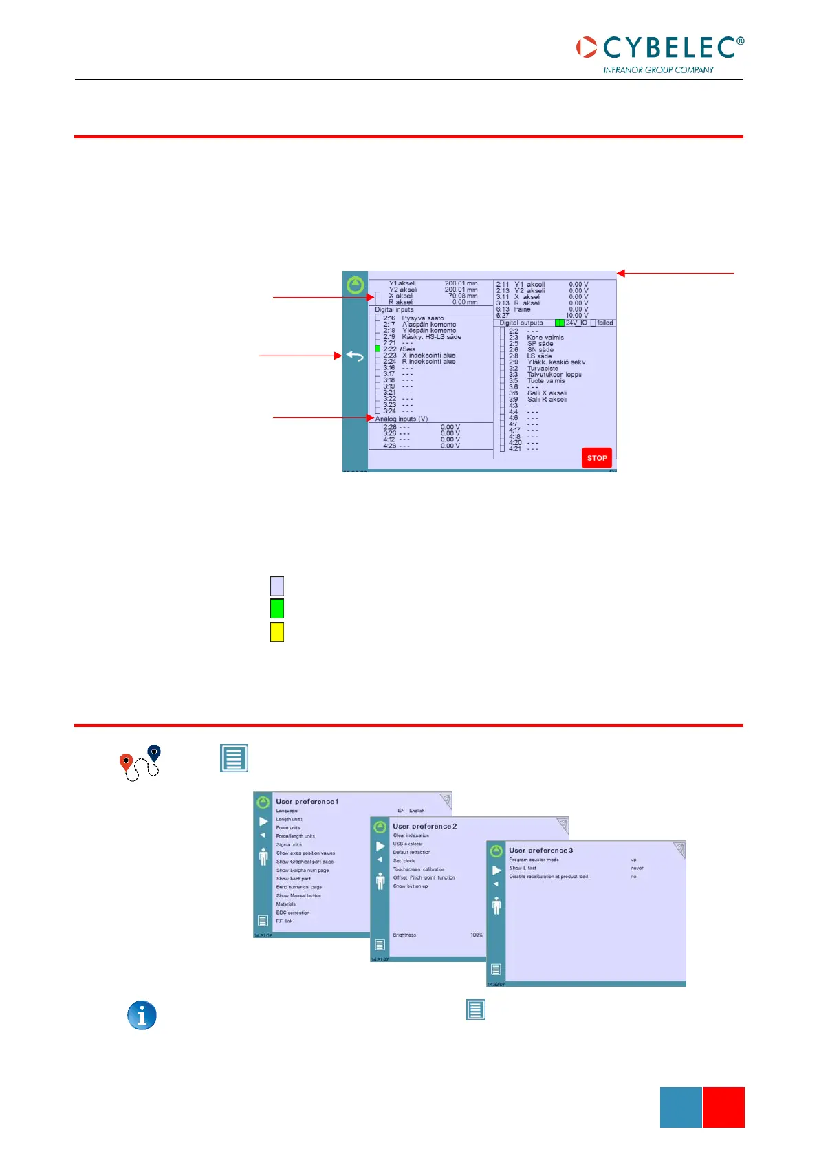 The Status page shows the status of all inputs and outputs and axes positions of the NC.