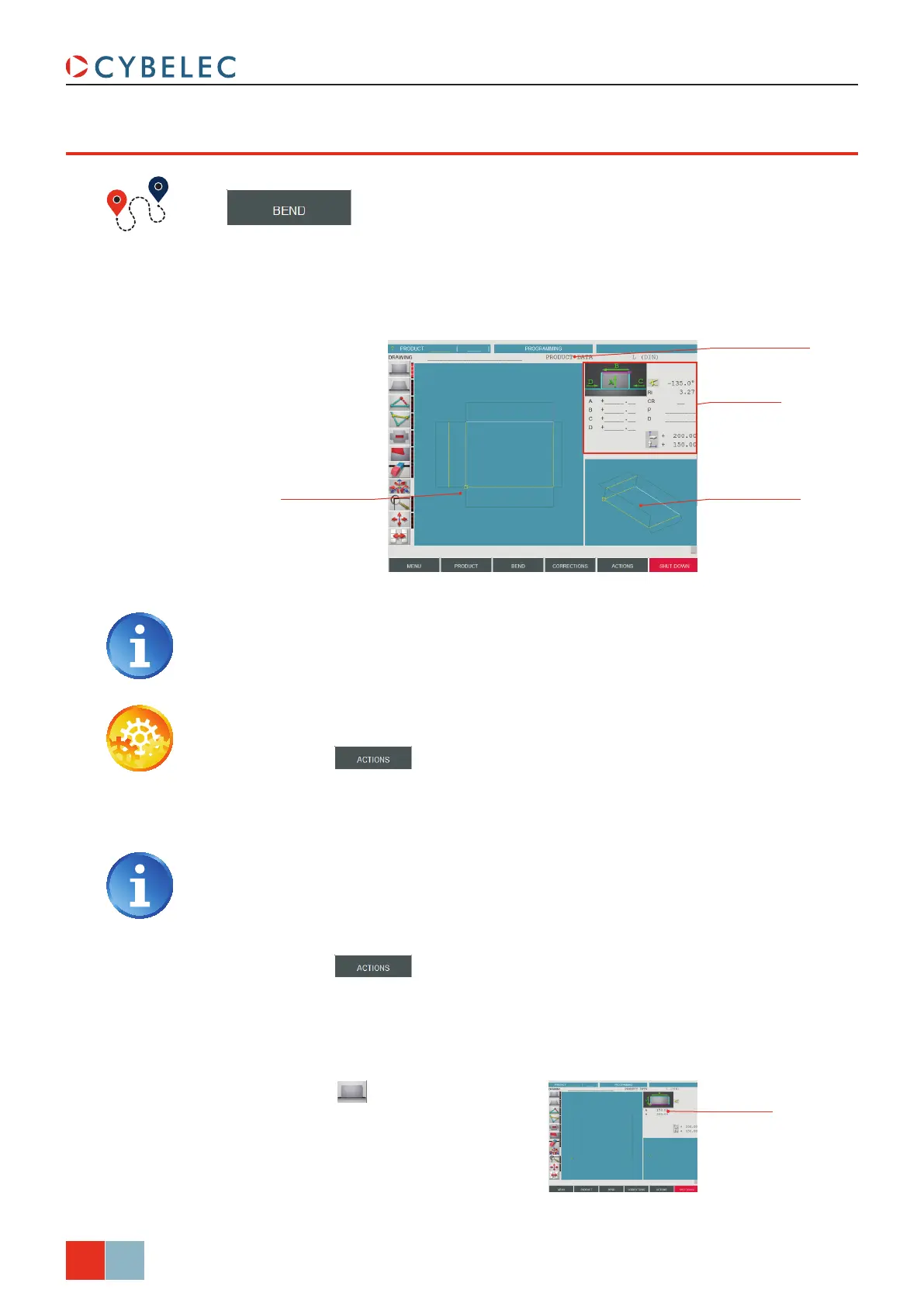enter the bending length, and select the tools to be used for the part by touching