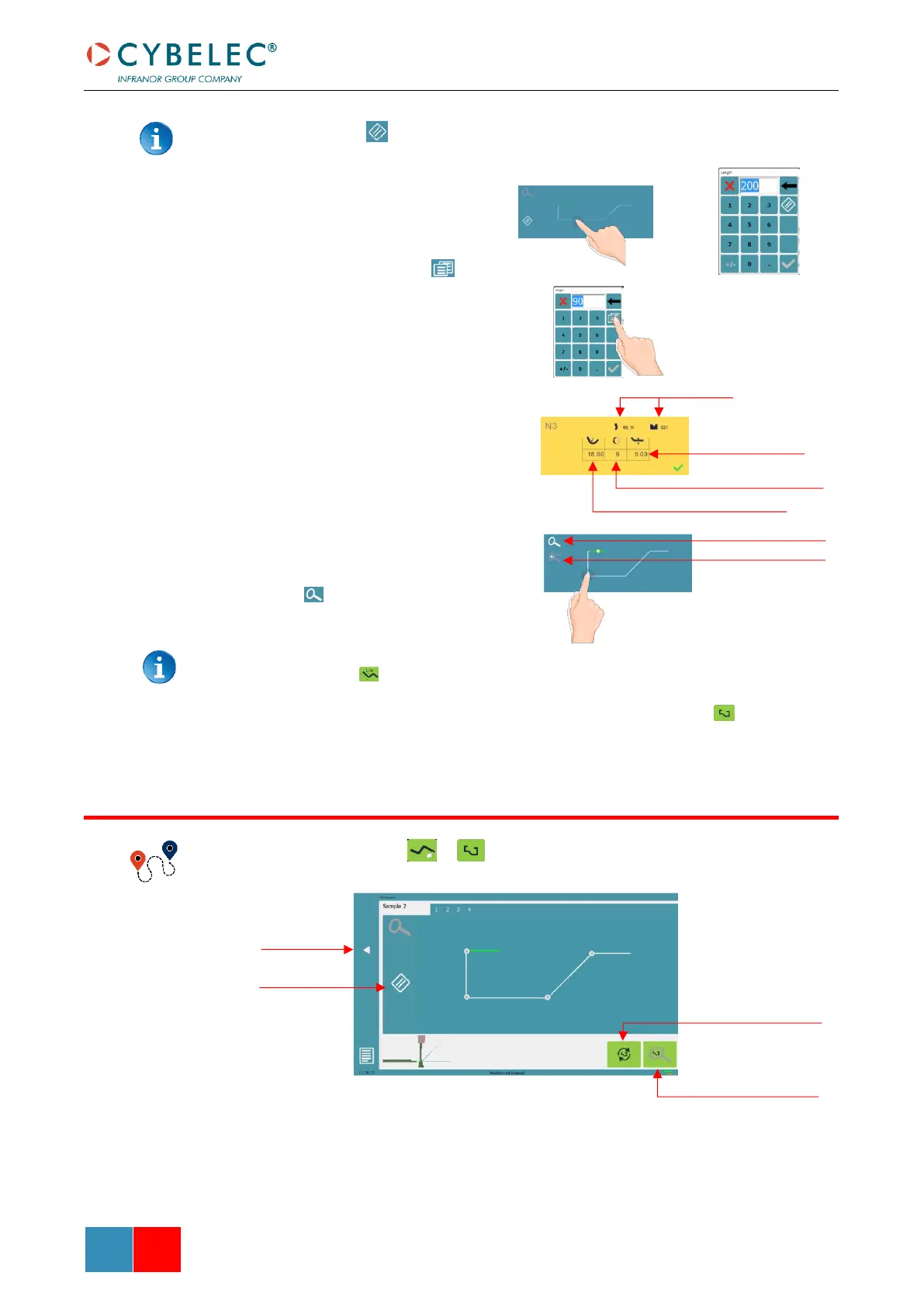 Touching this icon allows erasing the last segment added