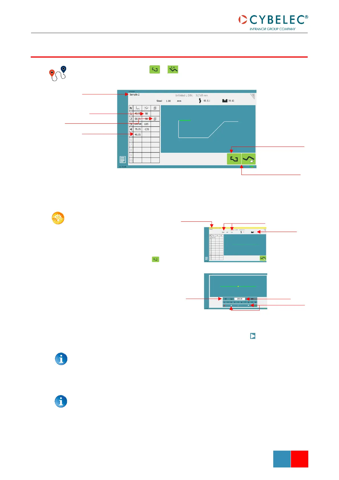 In this mode, the operator can define each step (length or angle) of a profile on a table.
