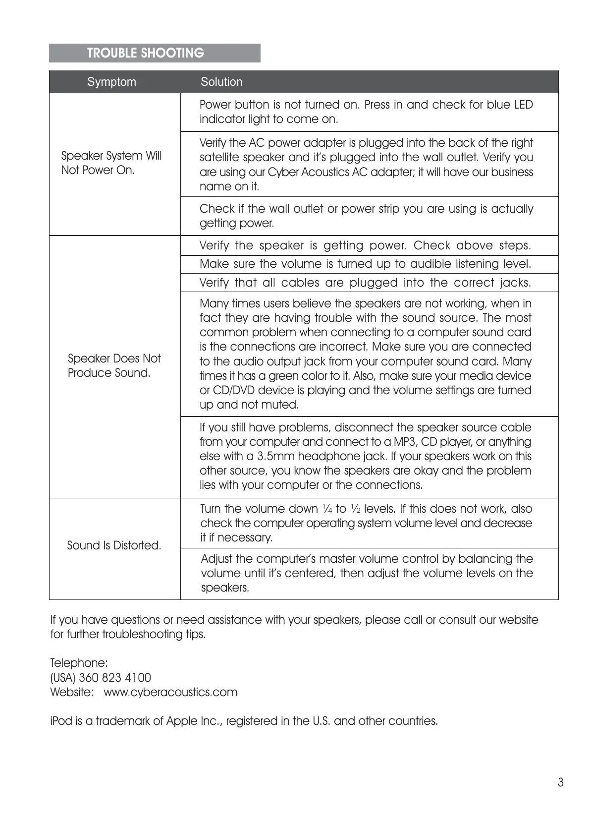 iPod is a trademark of Apple Inc., registered in the U.S. and other countries.