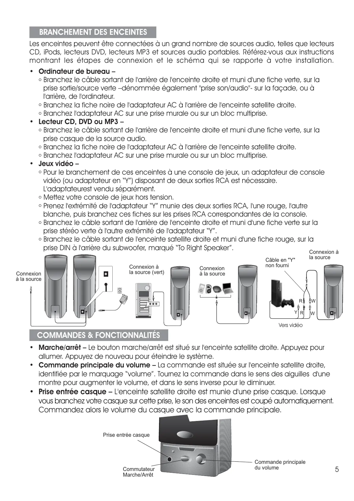 Commande principale du volume La commande est située sur l'enceinte satellite droite,