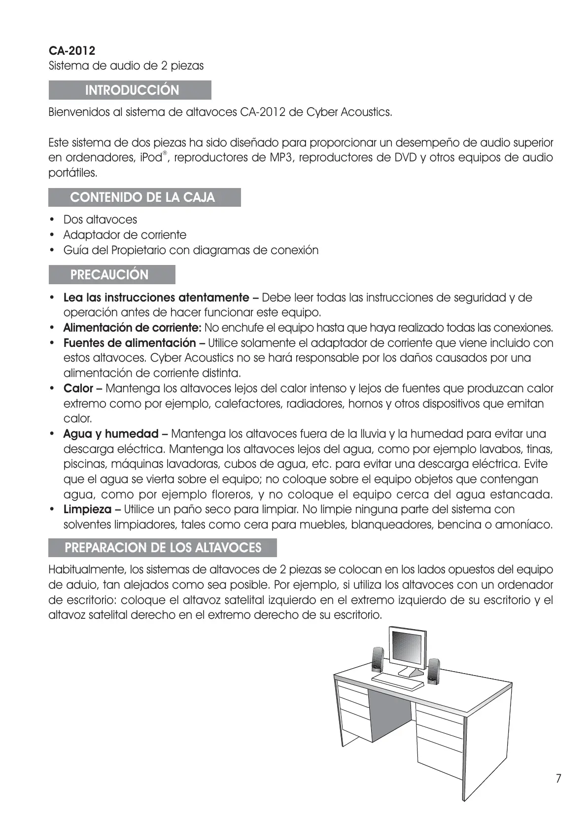 Bienvenidos al sistema de altavoces CA-2012 de Cyber Acoustics.