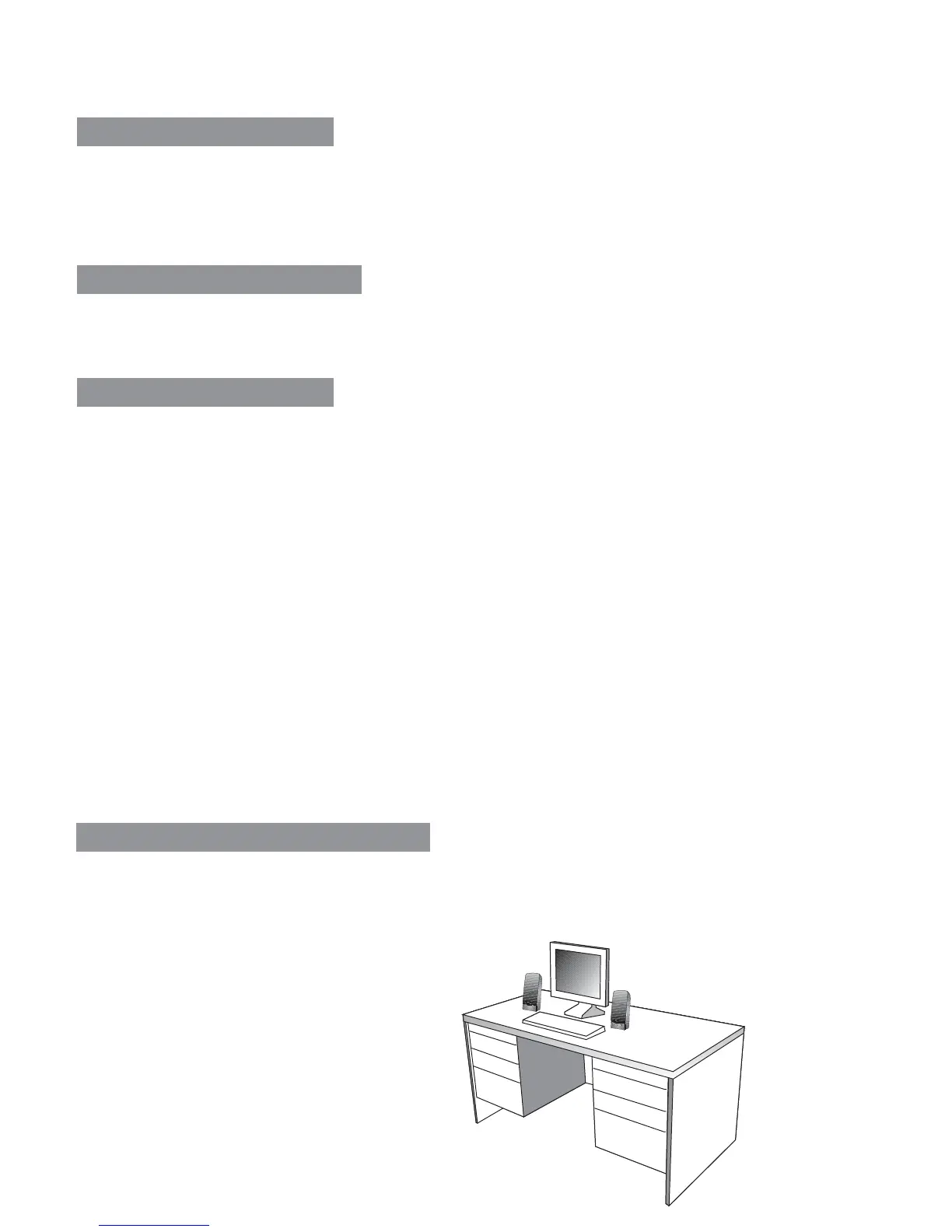 placez l'enceinte gauche dans l'angle à l'extrémité gauche du bureau et l'enceinte droite dans