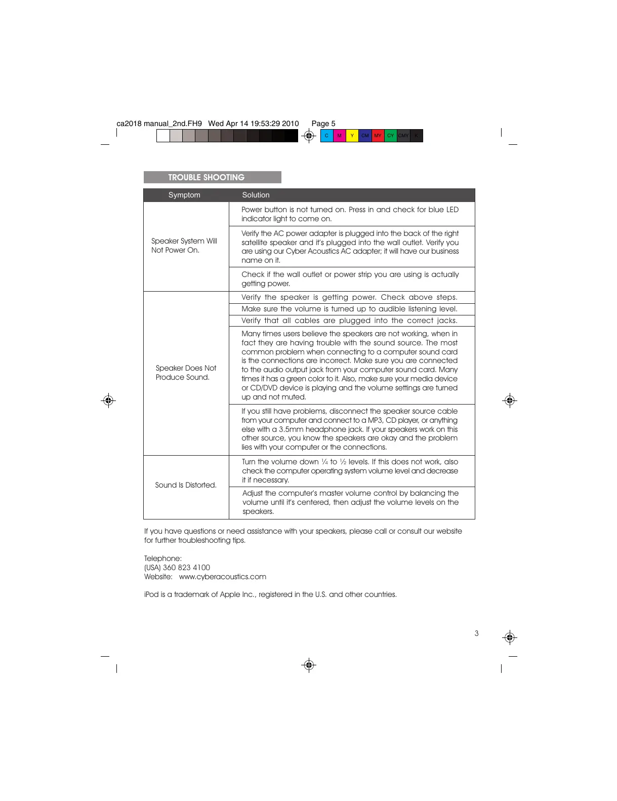 iPod is a trademark of Apple Inc., registered in the U.S. and other countries.