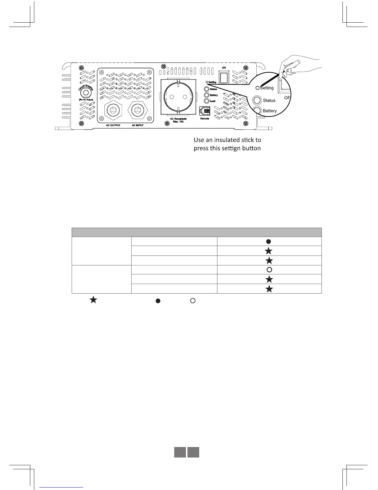 the inverter will send out a "Beep" sound. The button can then be released and