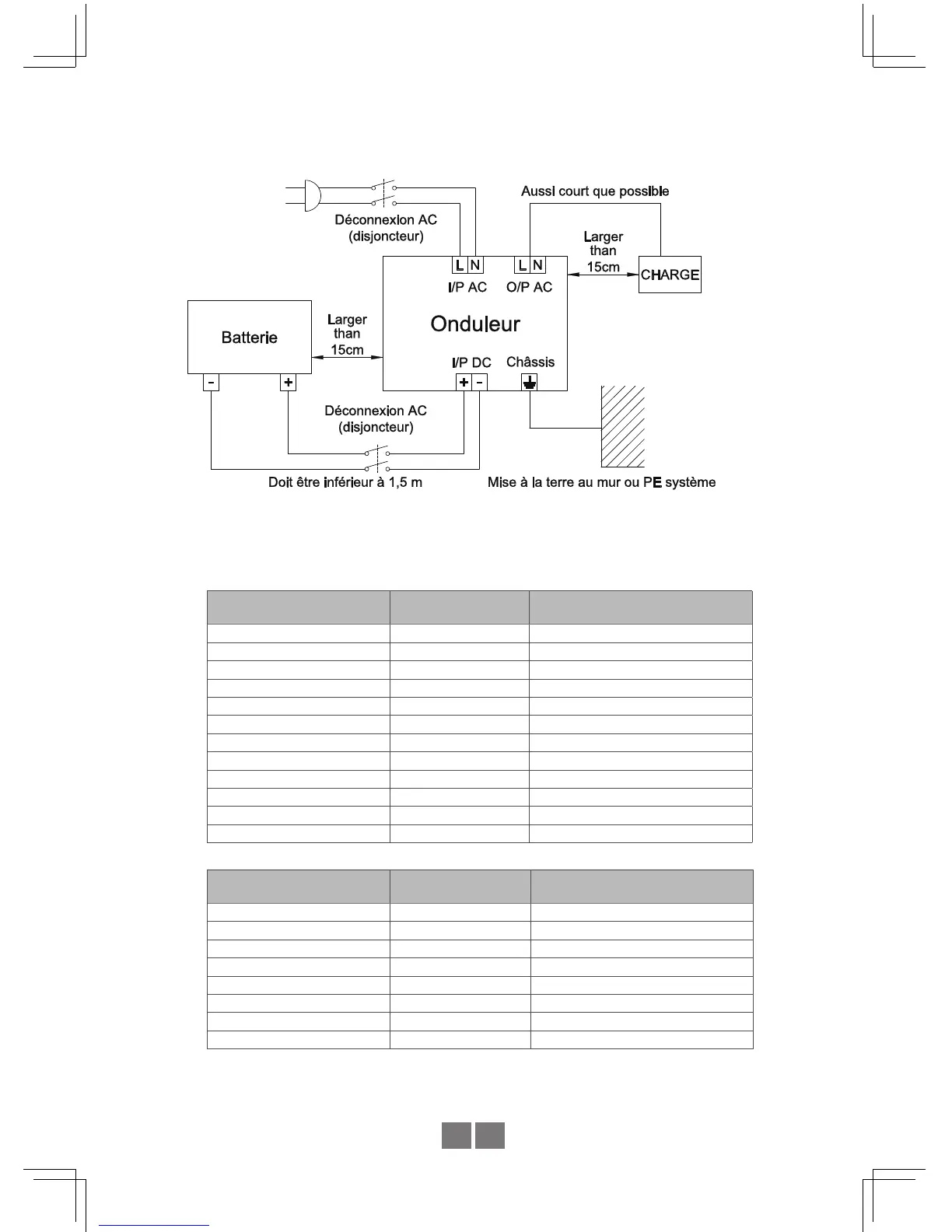 Veuillez choisir des câbles de section adaptée en fonction de la longueur réelle de