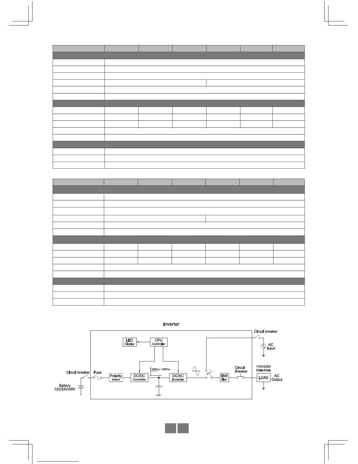 PROTECTION Over Load, Battery Polarity, Reverse by Fuse, Battery Low Shutdown, Battery Low Alarm