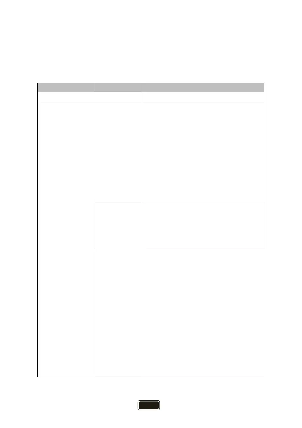Main menu Submenu Description