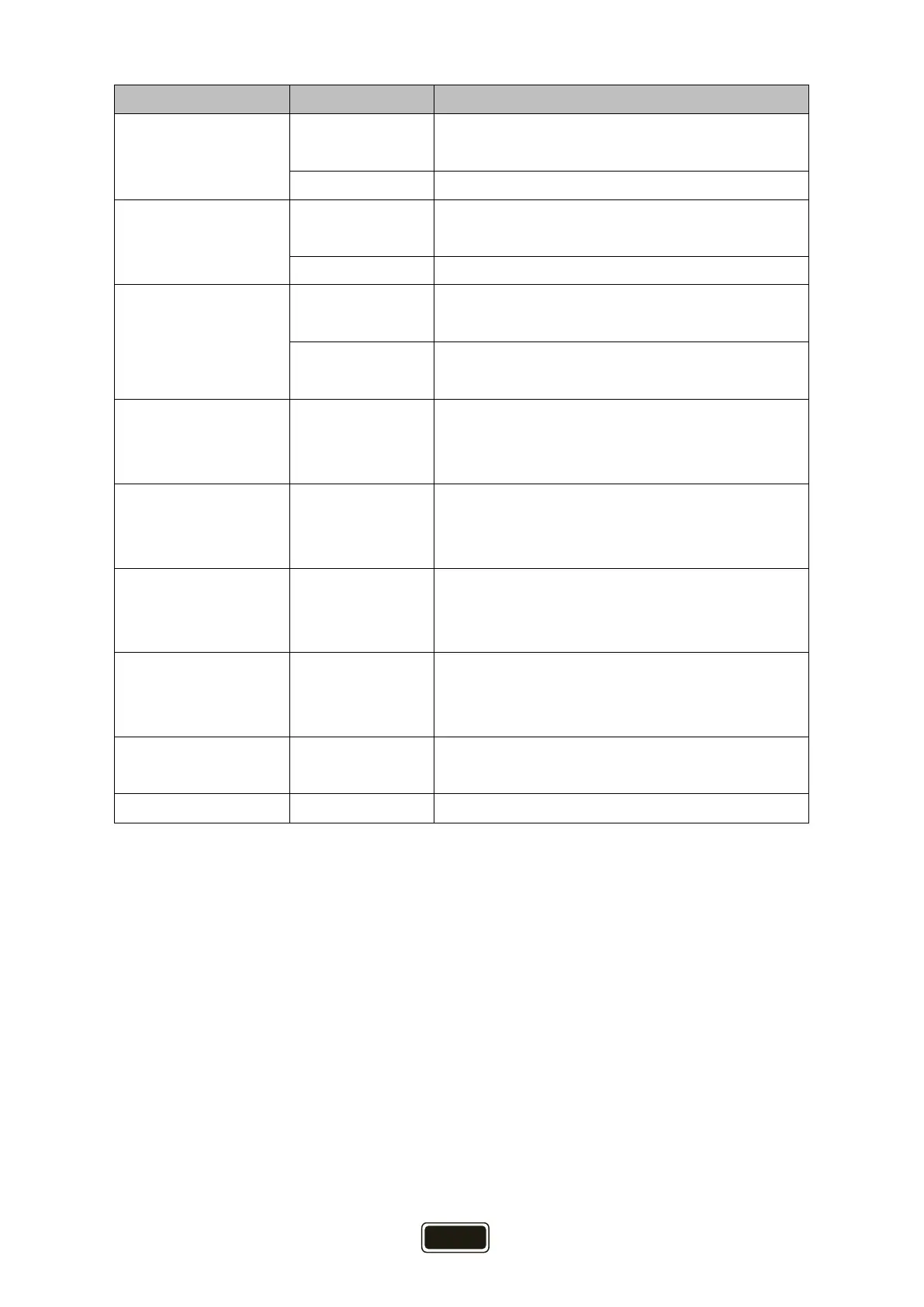 Main menu Submenu Description