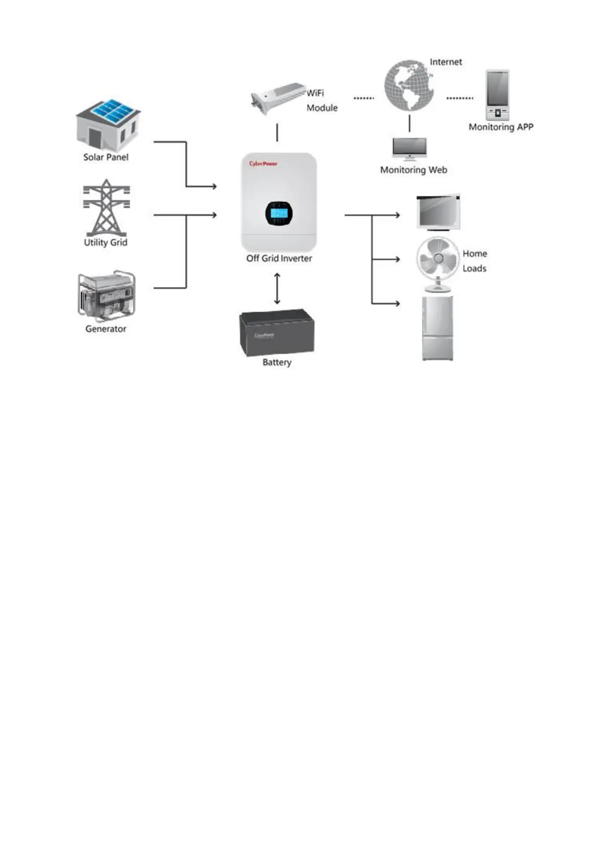 The whole system also needs other devices to achieve complete running such as PV modules, generator, or utility grid.
