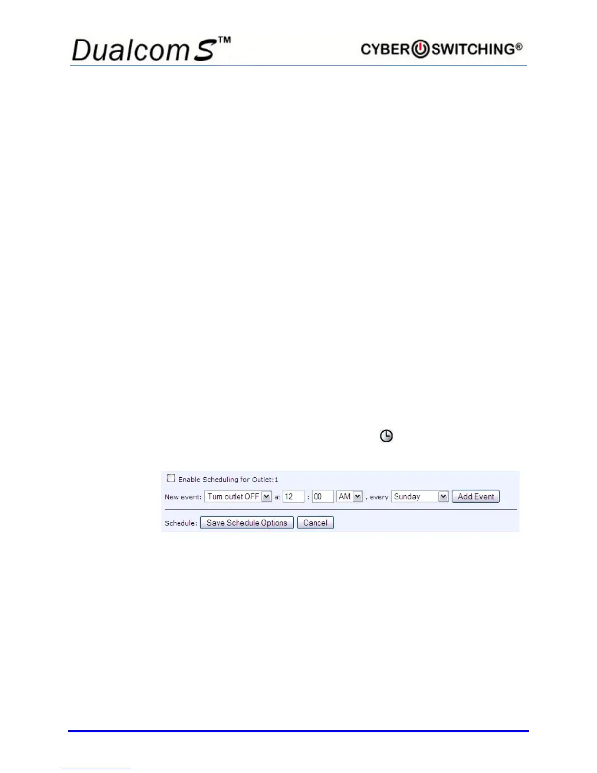 To set a scheduled task, select the clock icon that corresponds to the outlet