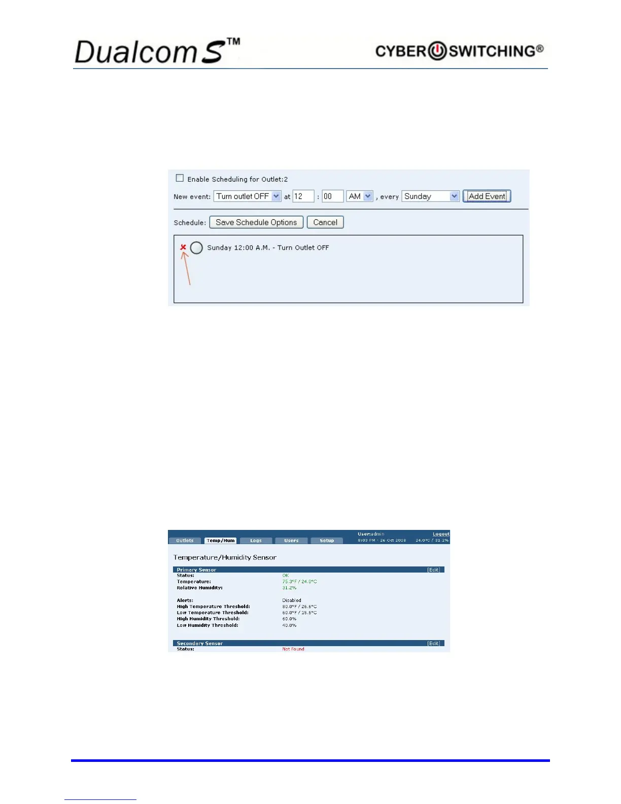 Note: To utilize the outlet scheduling feature, the correct time and date must