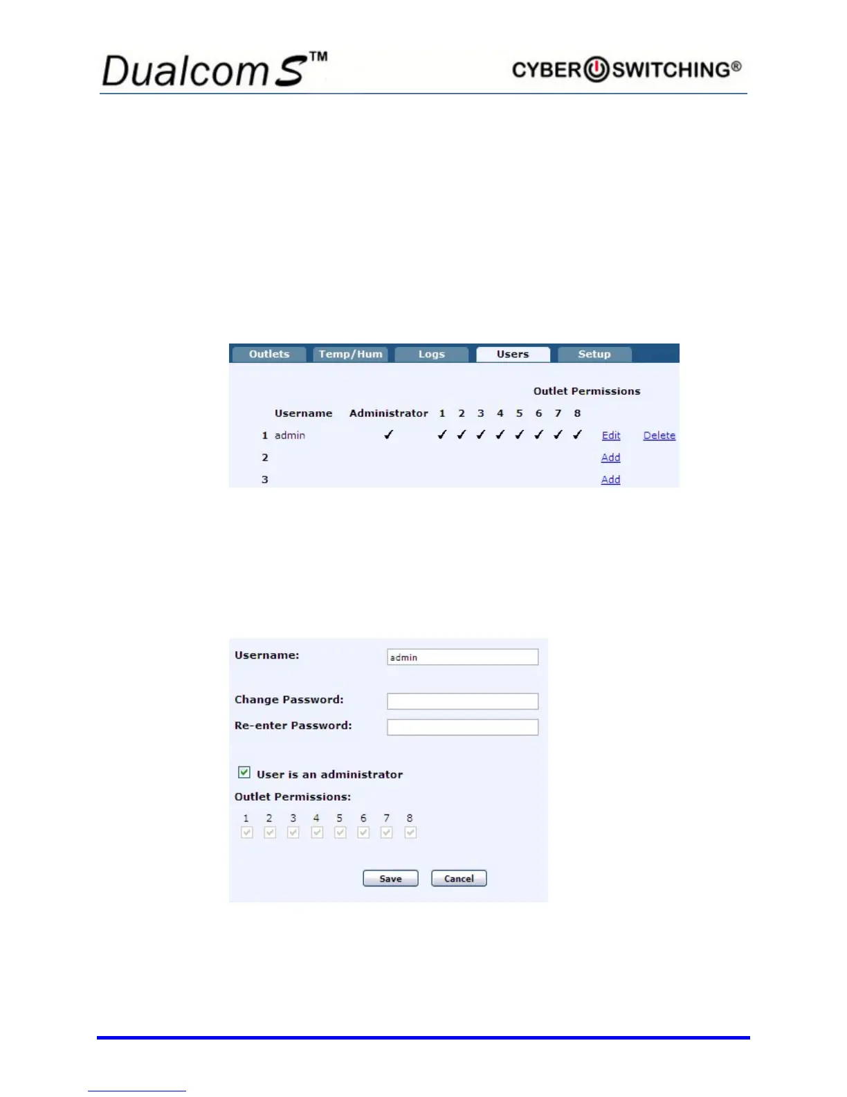 privileges. Up to 16 users can be created on the Dualcom S. To Access the