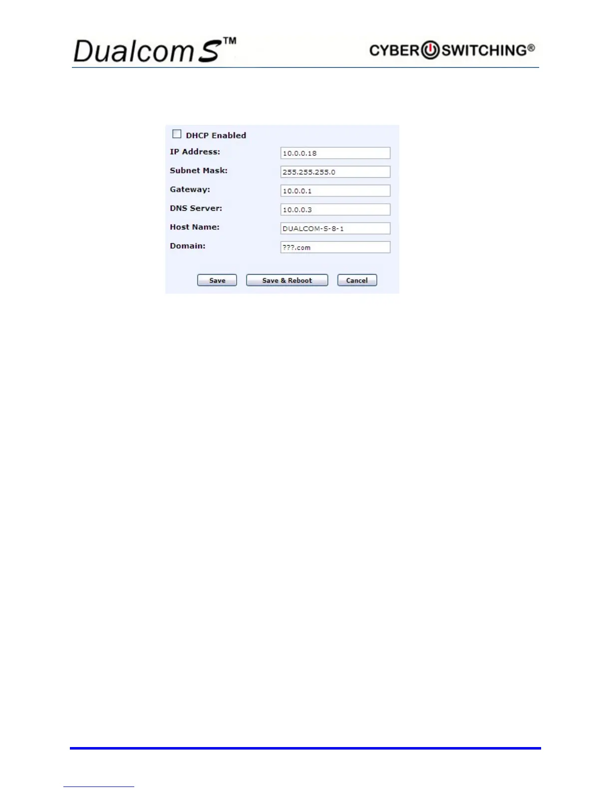 in a new value. Once all fields are filled in, click Save and Reboot.
