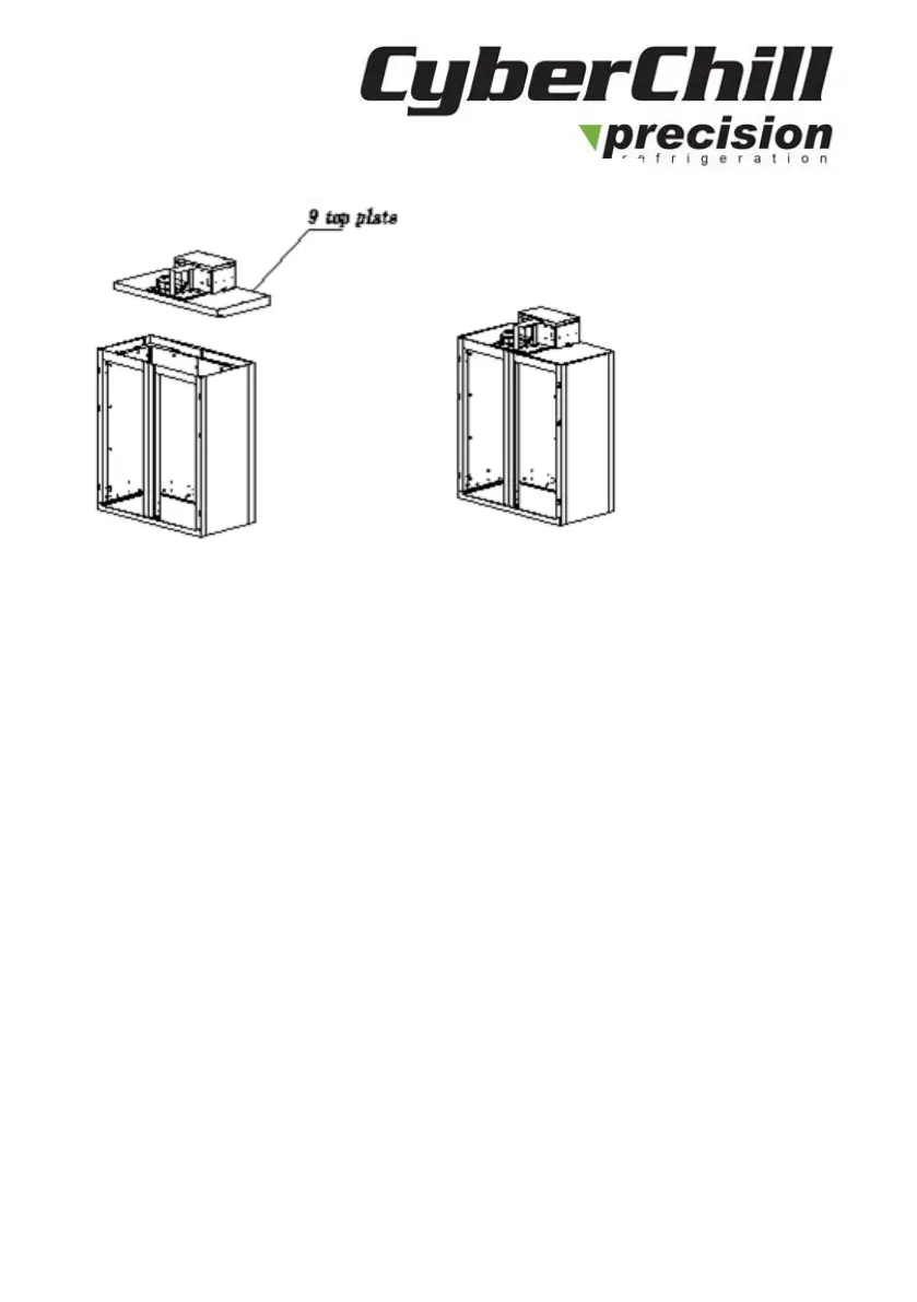7.1 Install No. 10 and No. 11 side plates above the cabinet and connect them firmly by