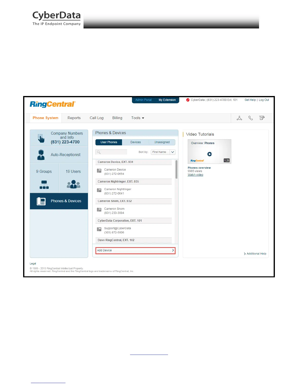 1. From the Phones & Devices menu, click Add Device.
