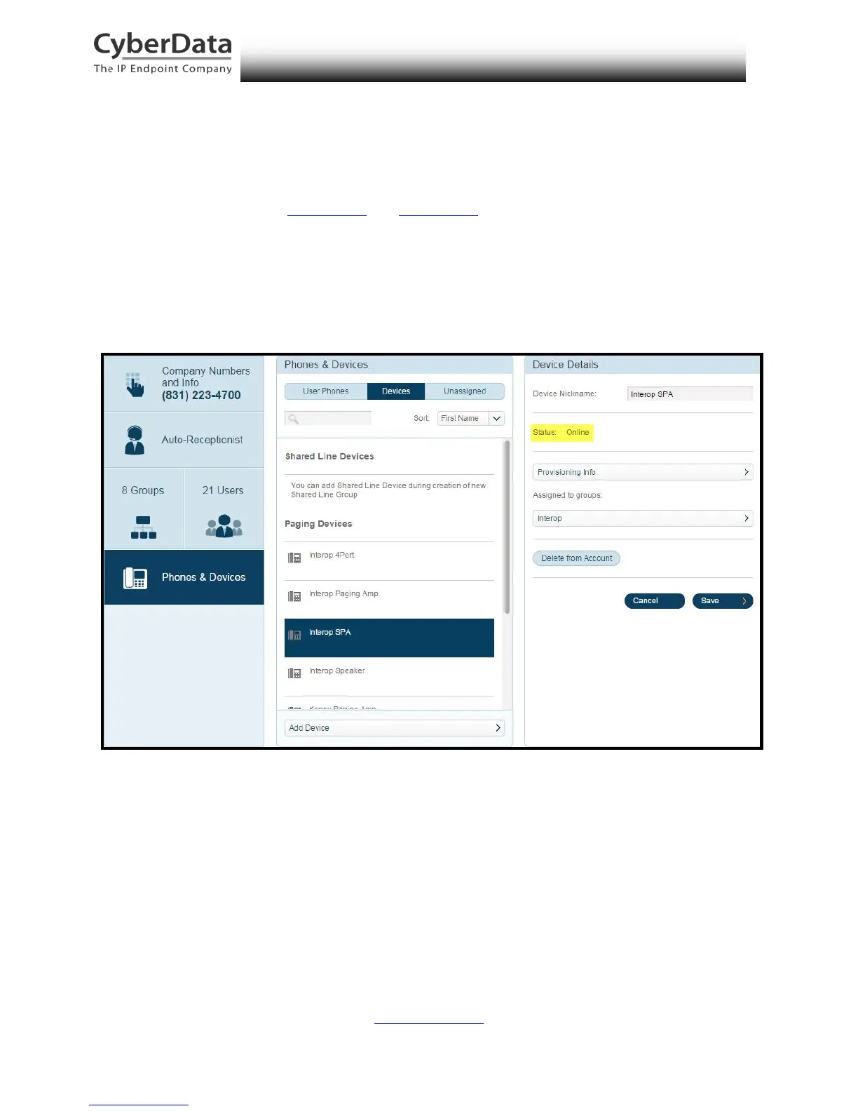 Admin Portal. From the Phones & Devices menu, select Devices and the Paging Device you just