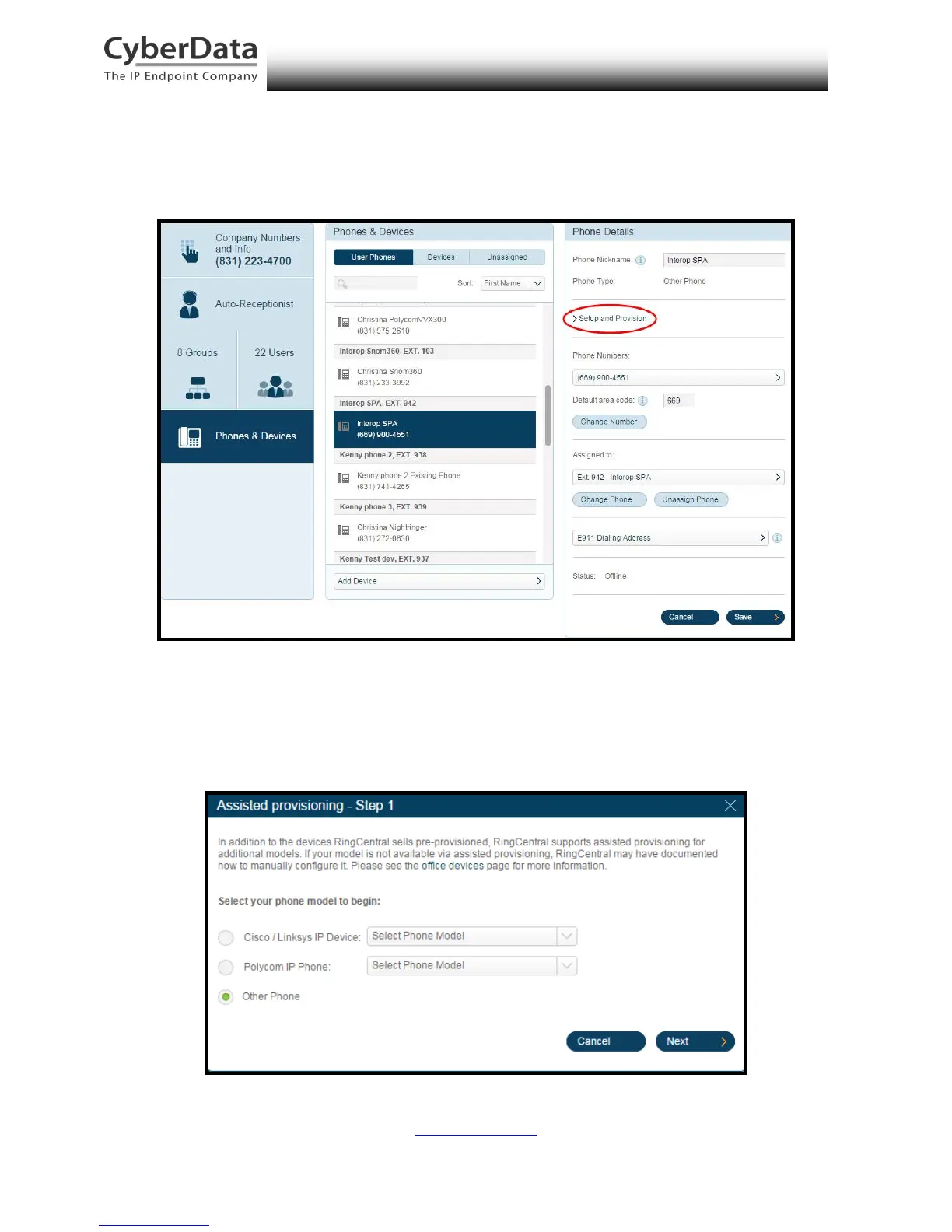 designated for the paging server. Click Setup and Provision.