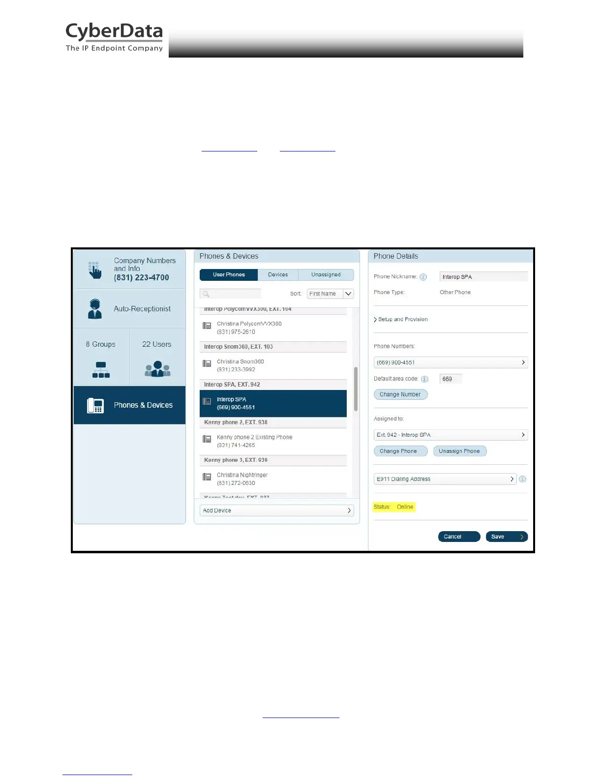 Admin Portal. From the Phones & Devices menu, select User Phones and the IP Phone you just