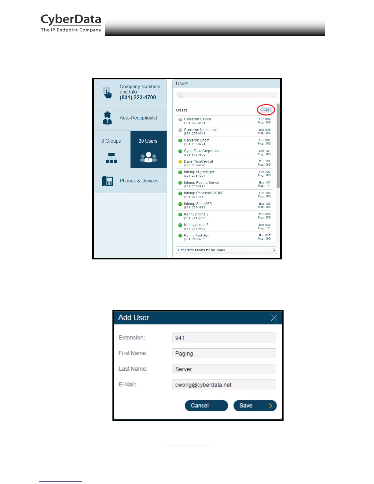 3. A popup window labeled Add User will appear. Complete the fields and click Save.