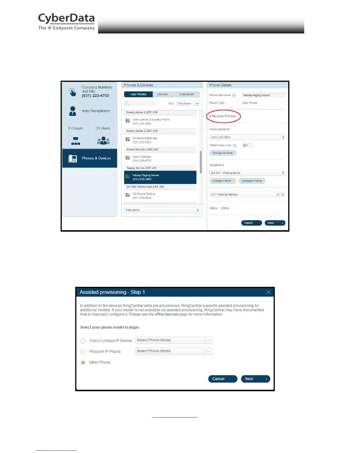 9. A popup window labeled Assisted provisioning – Step 1 will appear. Select Other