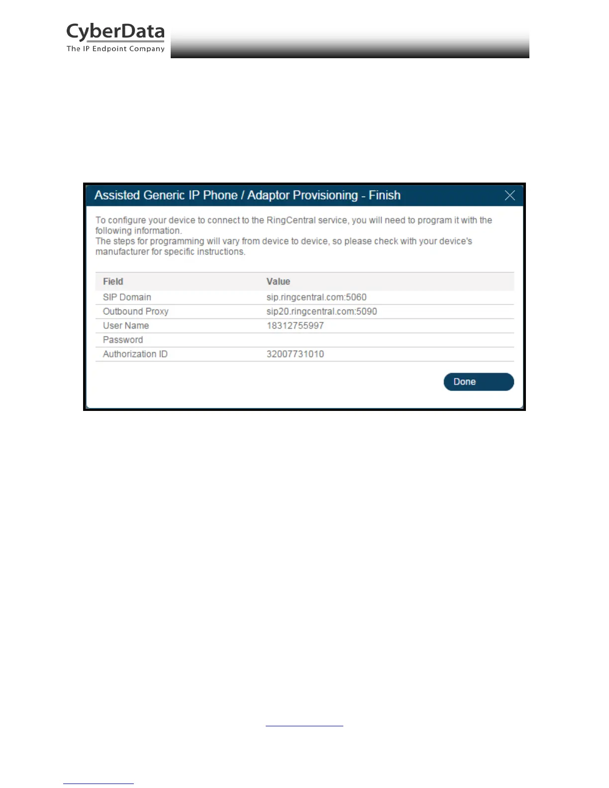 Figure 6-1. Nightringer’s IP Phone Provisioning Information