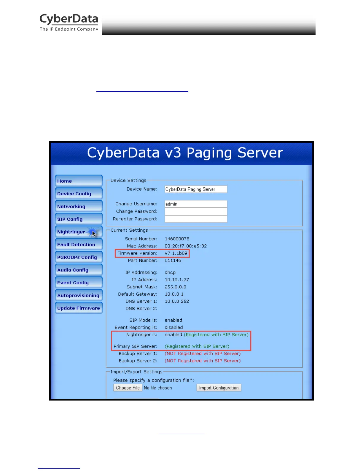 Figure 6-2. Home Page of the Web Interface – Nightringer Button
