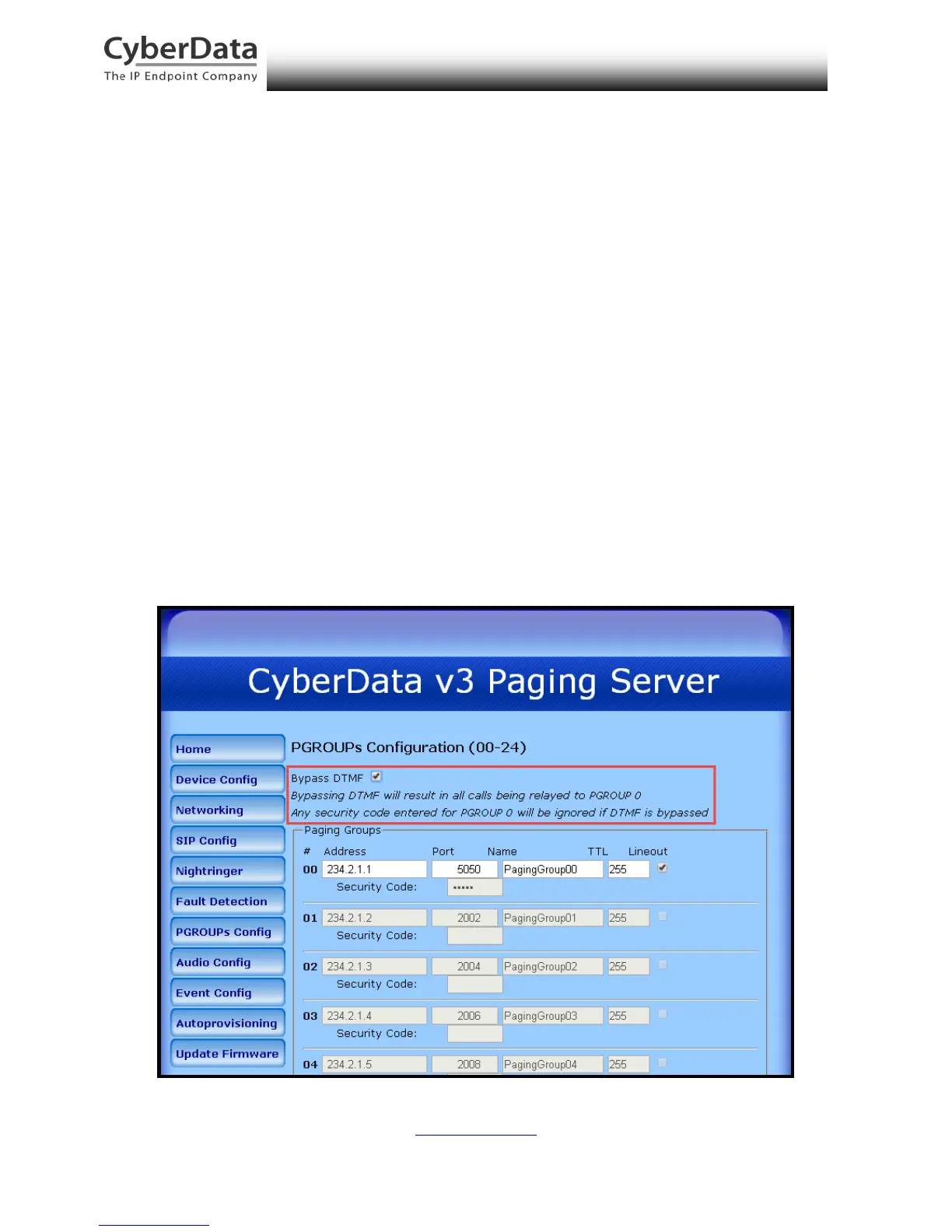 Next, be sure to set the option to Bypass DTMF on the PGROUPS Configuration page of the web