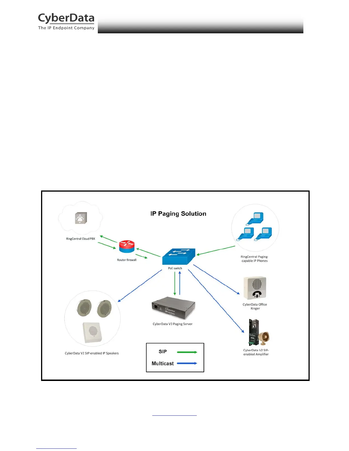 Paging Server and your choice of PoE, multicast-enabled IP paging endpoints from CyberData.