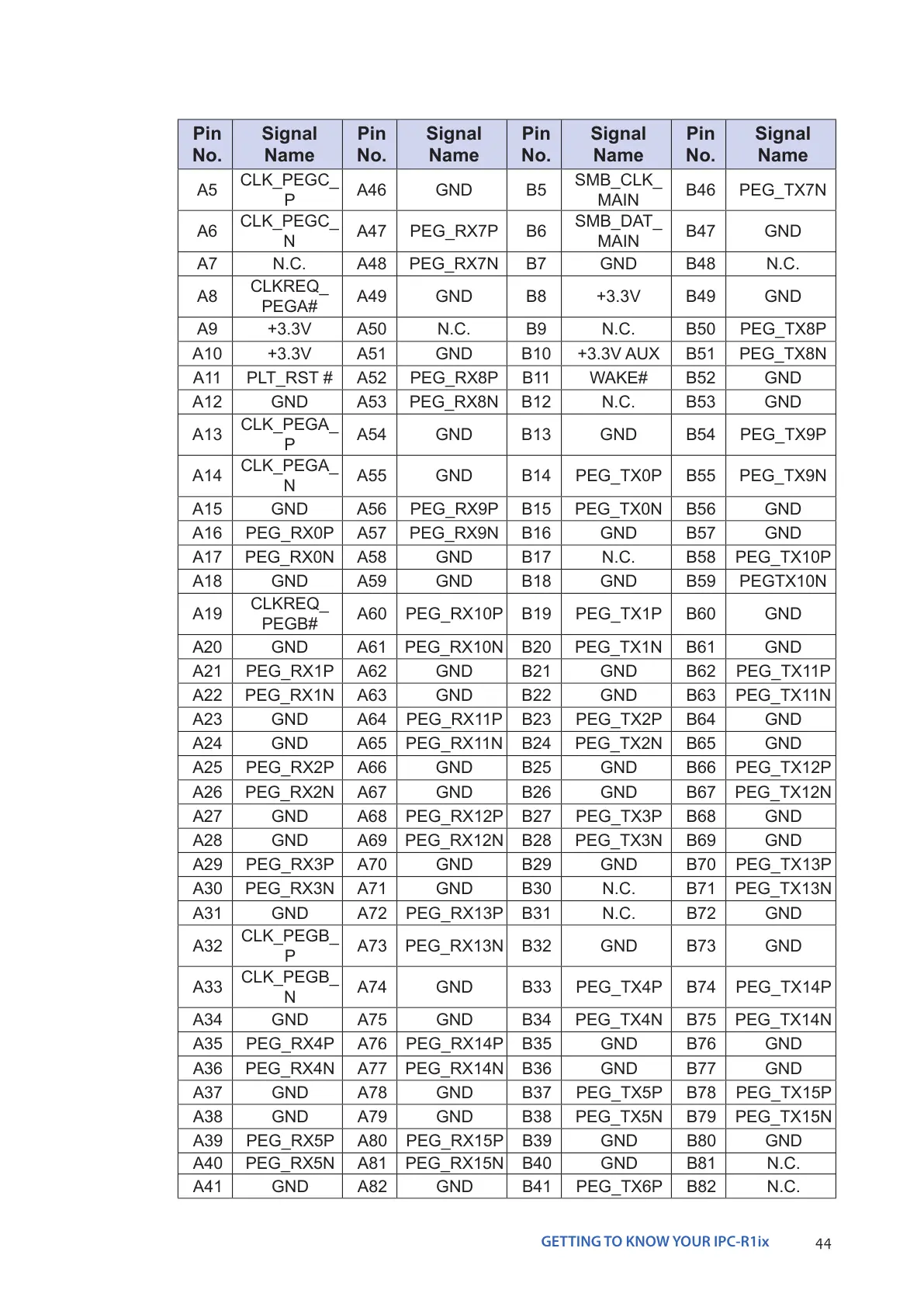 A17 PEG_RX0N A58 GND B17 N.C. B58 PEG_TX10P