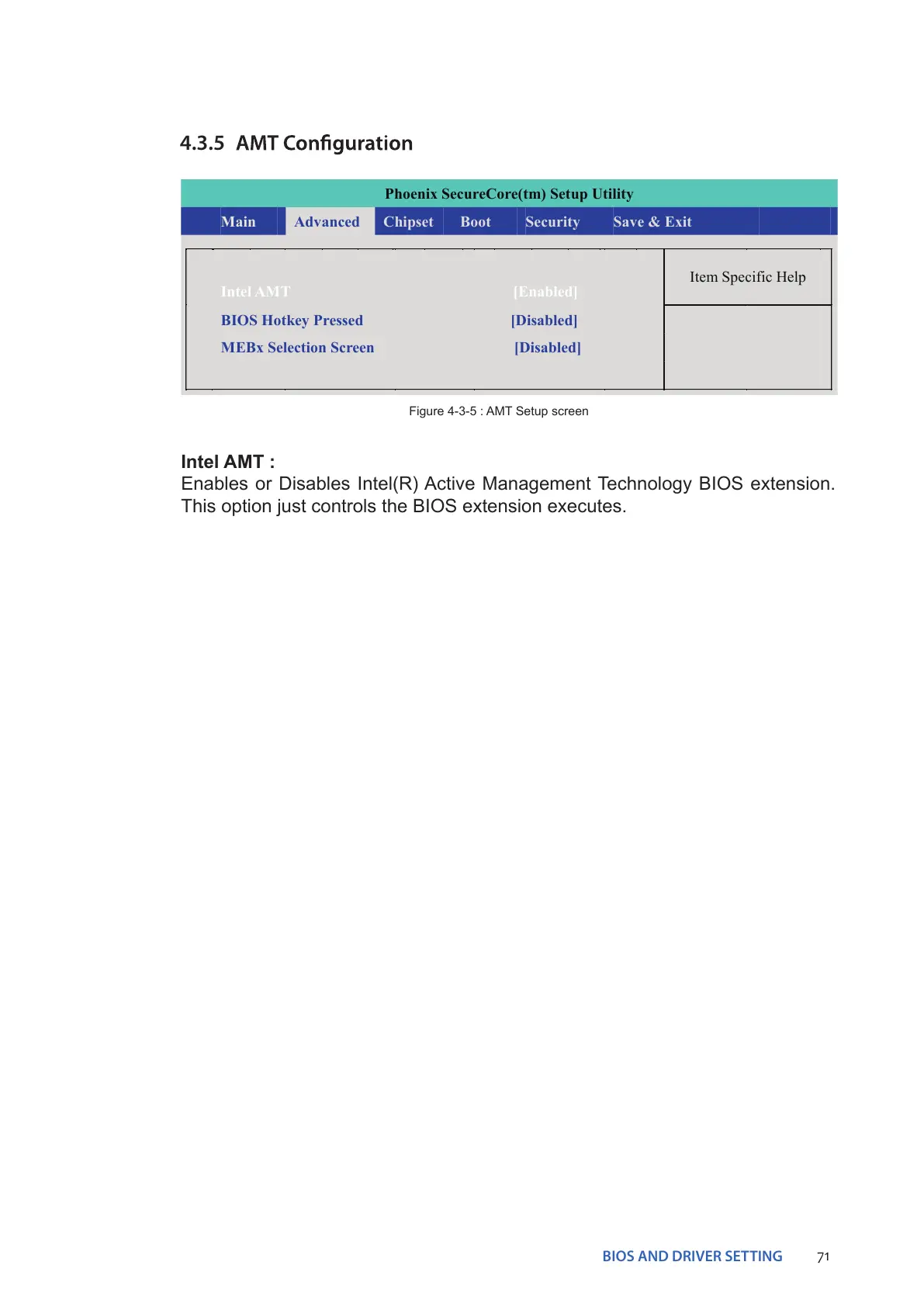 Figure 4-3-5 : AMT Setup screen