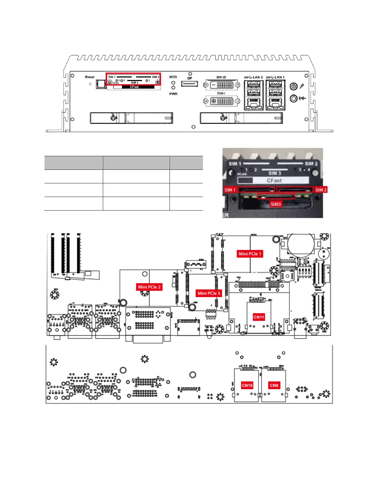 MiniPCIe Slot/SIM Slot/WLAN LED Mapping Table: