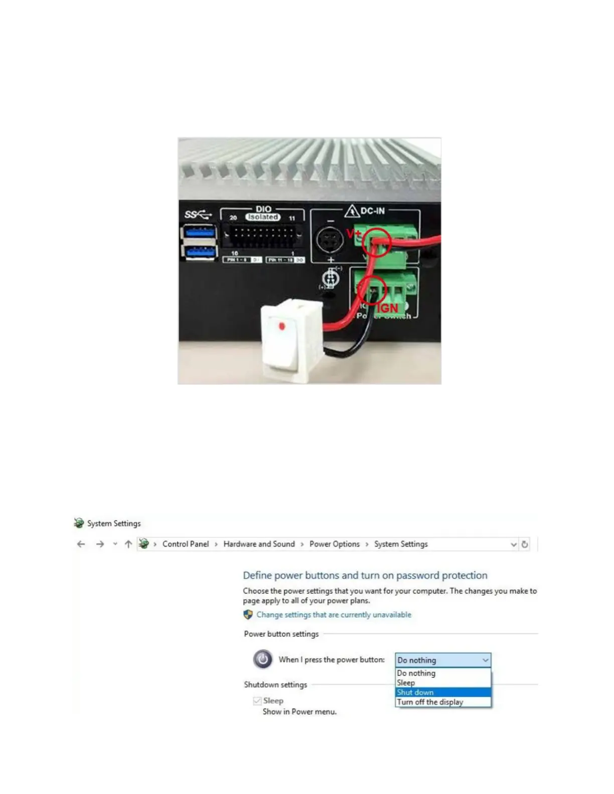 • For proper ignition control, the power button setting in Windows should be set to