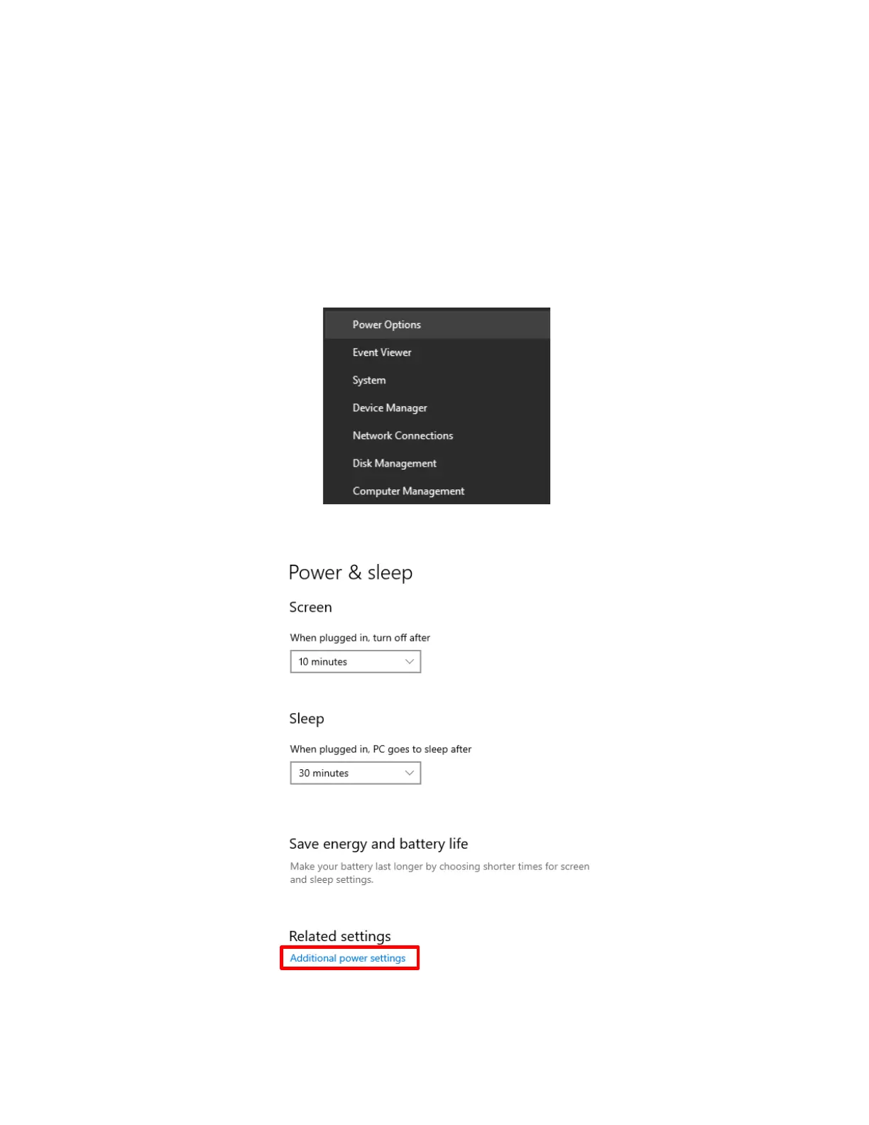 Then click [Additional power settings].