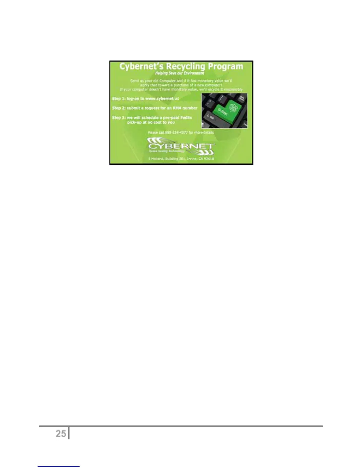 Cybernet has an e-recycling program that is very easy to use. Just follow the steps