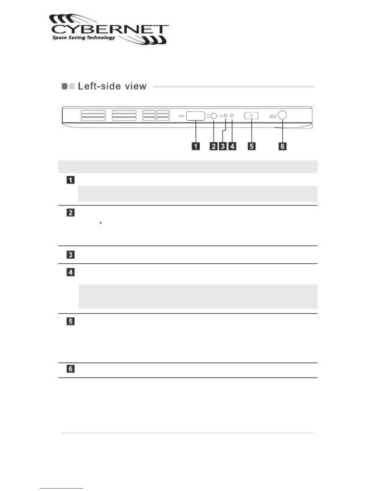 USB 2.0 port Connect to USB device.
