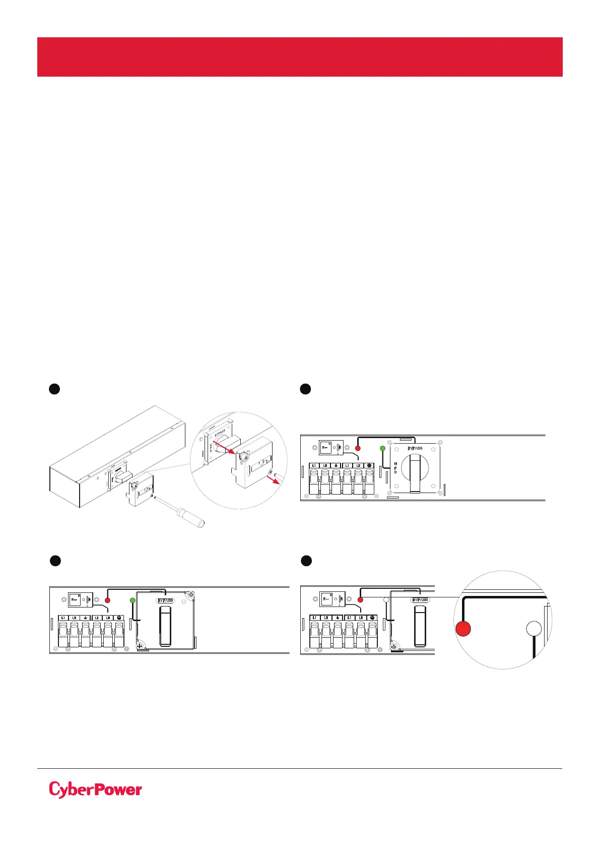 3. Set the MBP manual Bypass switch to “Bypass” position, indicating that the load is supplied