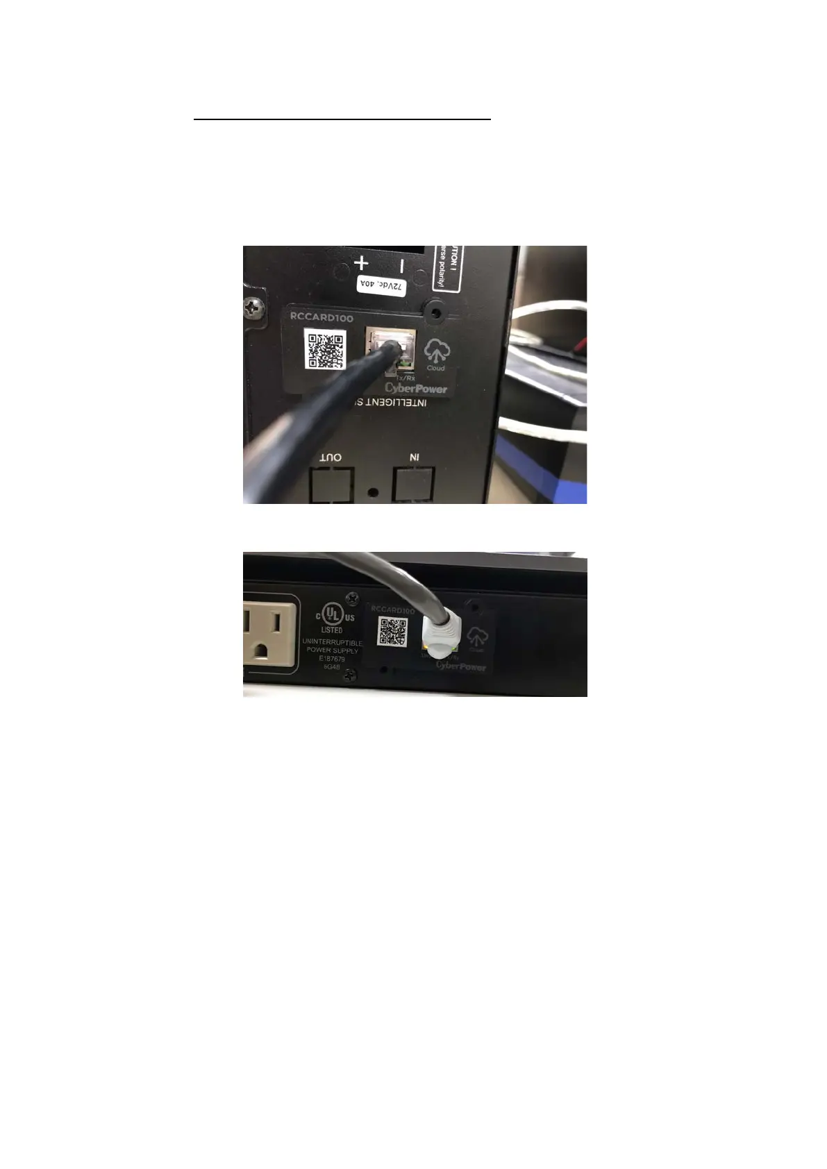 Install the RCCARD100 to the UPS and connect with the