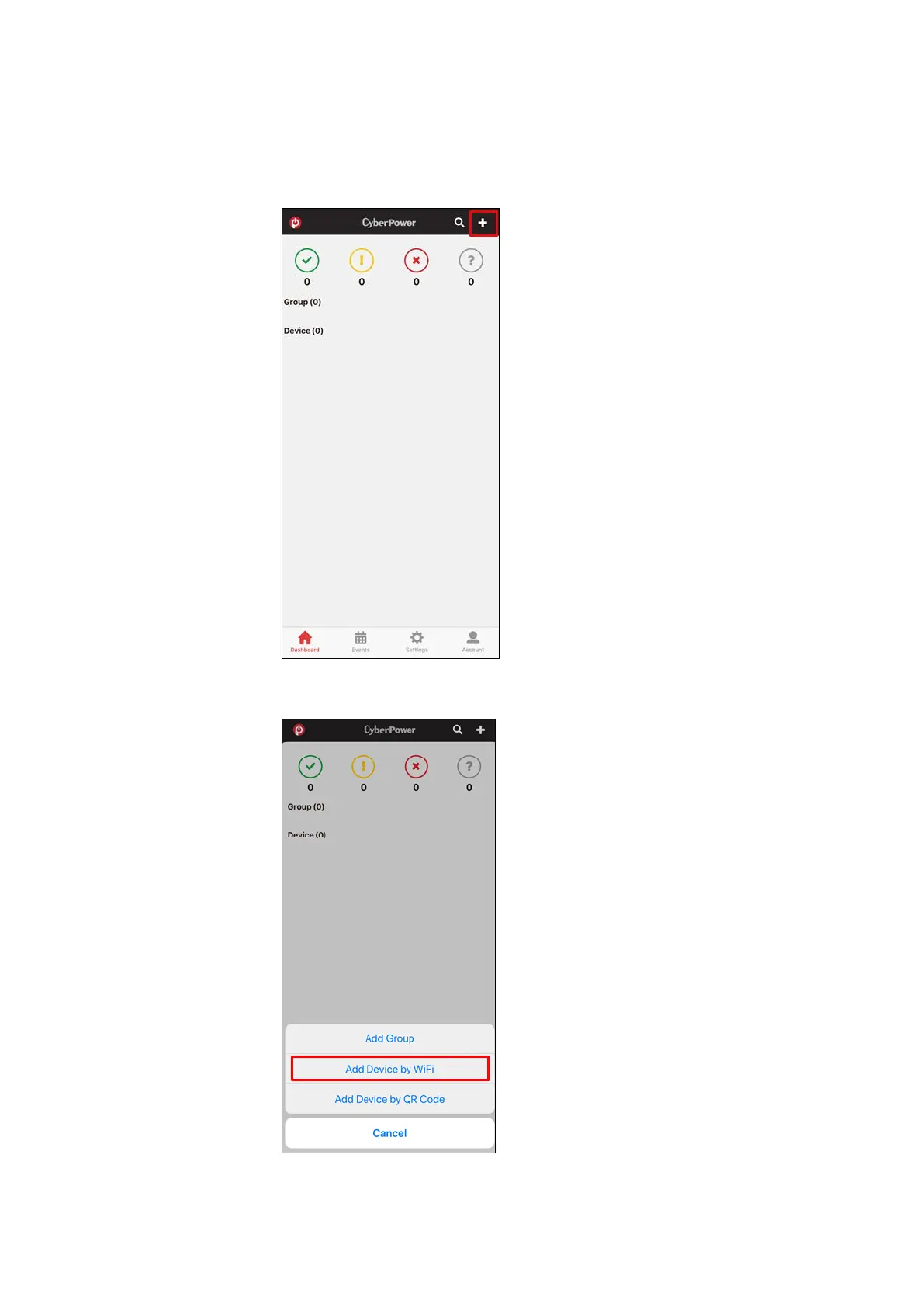 Open PowerPanel® App and click “+”.