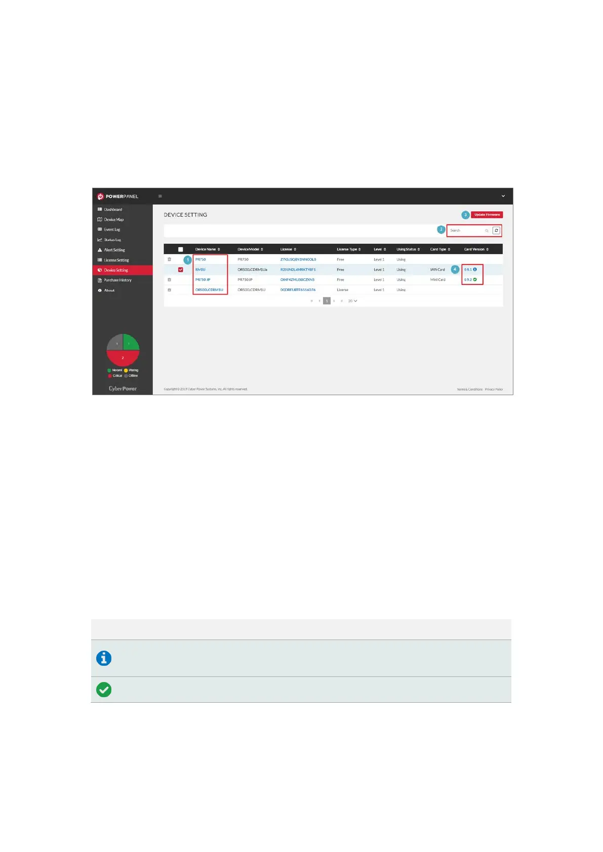firmware update history (❹ in Figure 3.16). The icon of the card