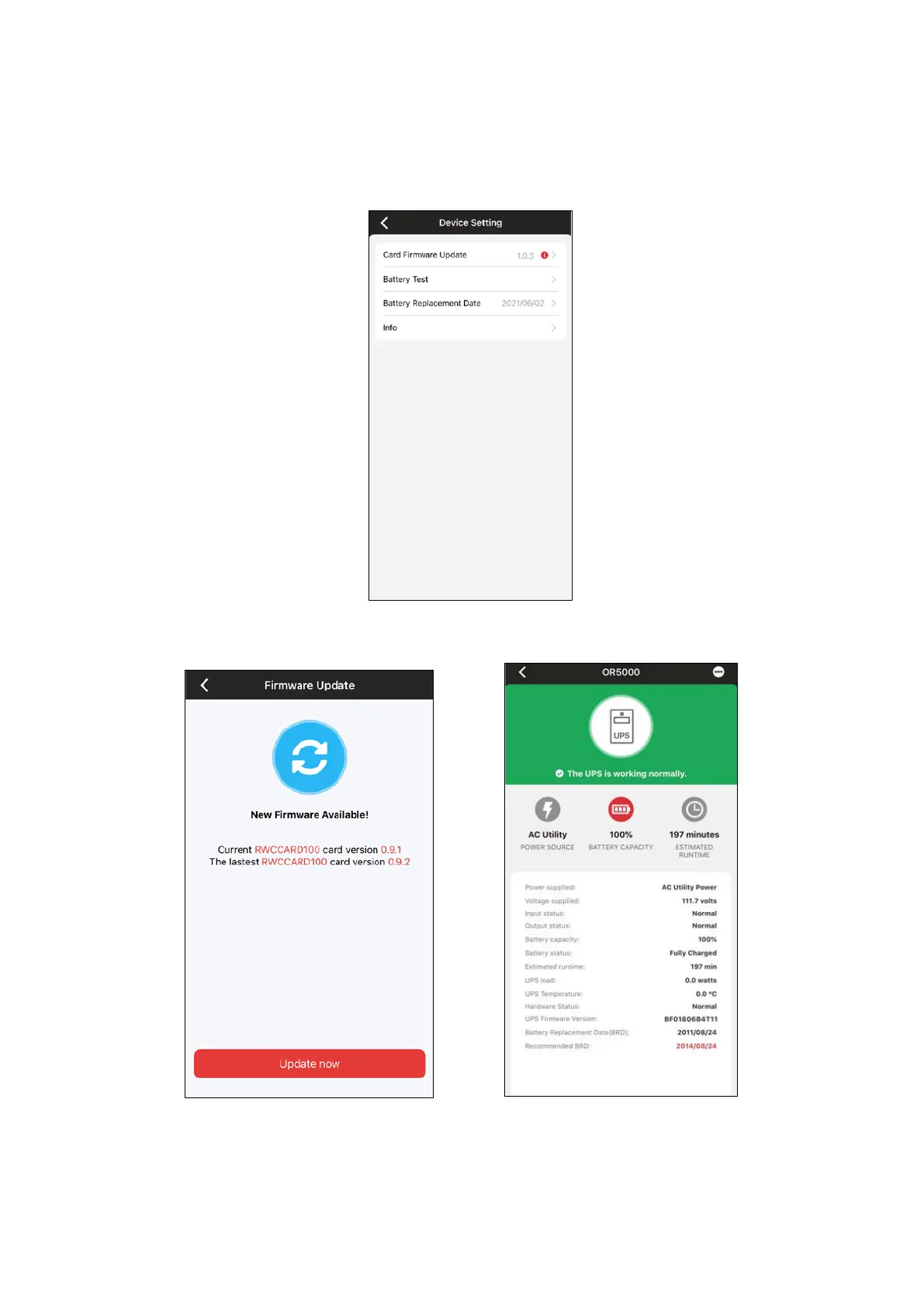 CyberPower PowerPanel Cloud - Figure 3.24 Device Setting; Figure 3.25 Firmware Update; Figure 3.26 Battery Expiration