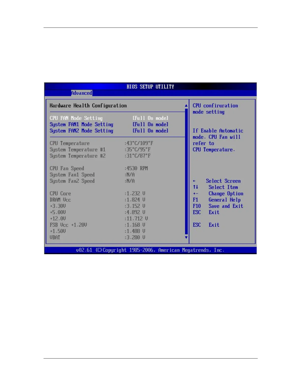 The Hardware Health Configuration menu (BIOS Menu 8) shows the operating