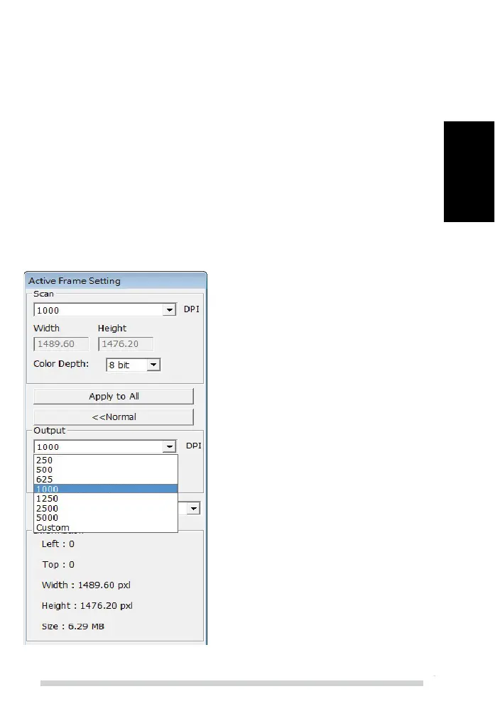 The default scanning resolution is 1000dpi, additional resolution options are