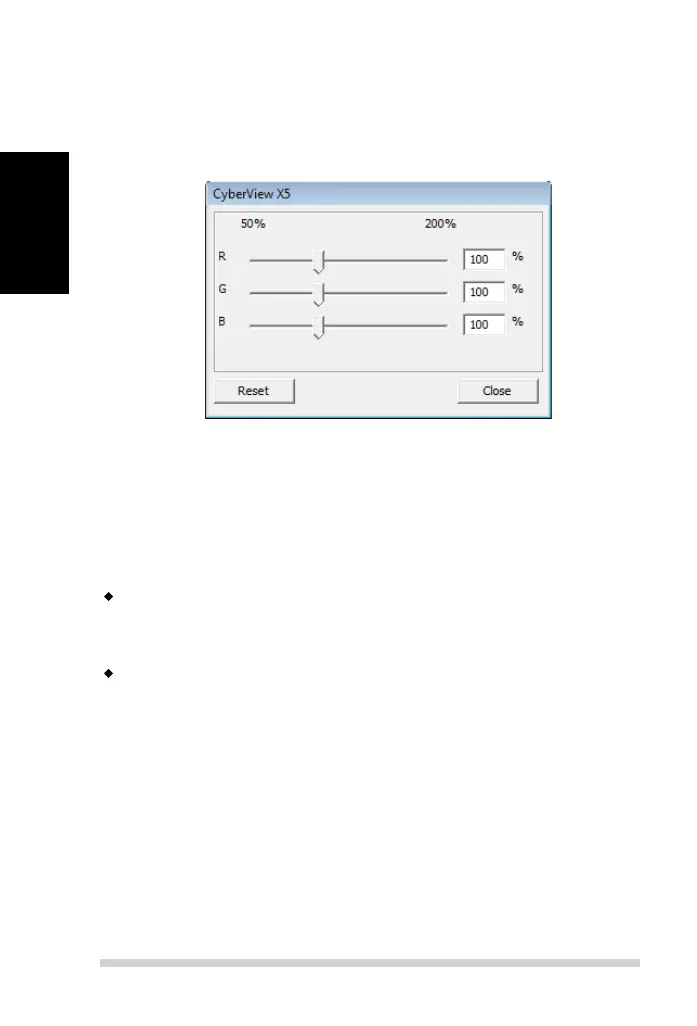 Exposure Setting: To adjust the exposure time (R, G, B) press ”Reset” to restore