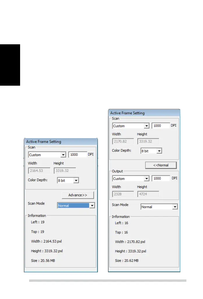 Advanced mode [ex: II]to input the parameter of scan and output (including