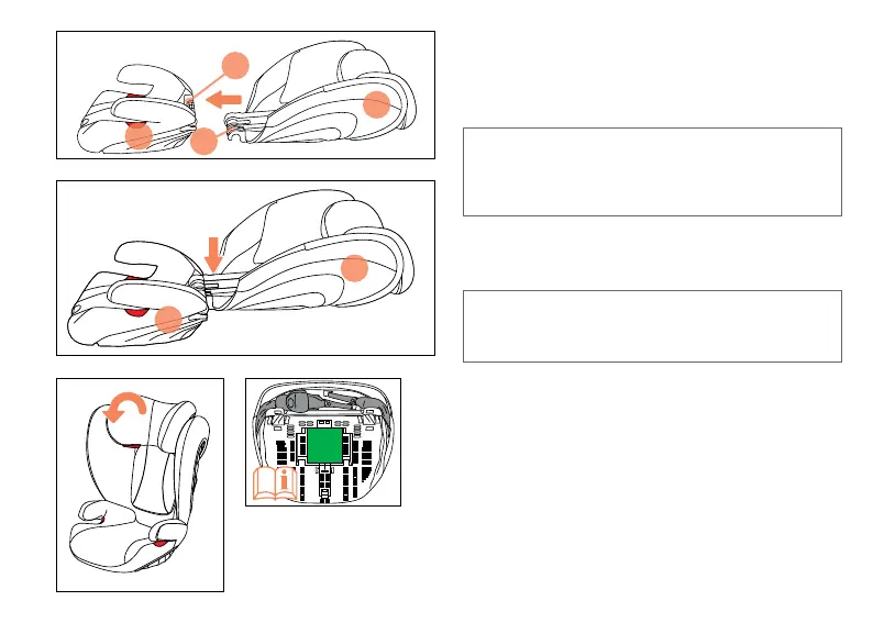 Connect the backrest (2) to the booster (1) by hooking the guide