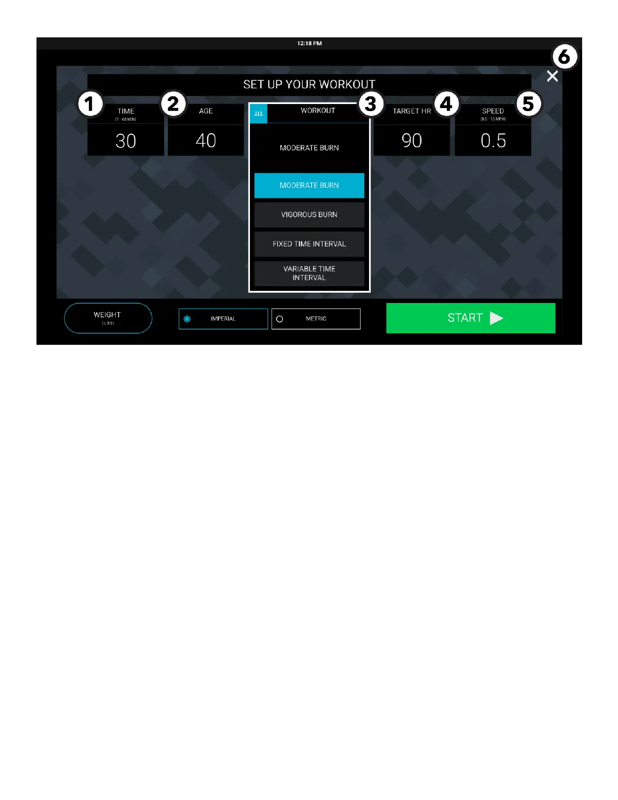 6. Press to exit the Set Up Your Workout screen, and return to the Goal Selection screen.