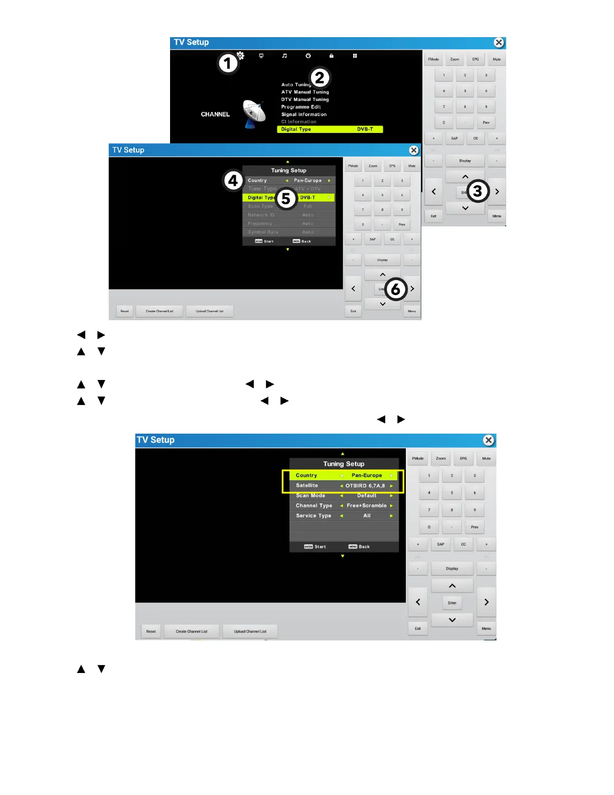 or to navigate signal type if DVB-S is selected as the Digital Type.